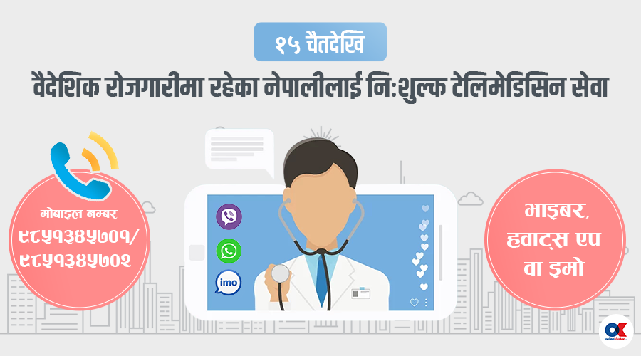 काठमाडौं । वैदेशिक रोजगारीमा गएका नेपाली श्रमिकले टेलिमेडिसिन सेवा पाउने भएका छन् । श्रम, रोजगार तथा सामाजिक सुरक्षा मन्त्रालयले २ फागुनमा टेलिमेडिसिन सेवा सञ्चालन कार्यविधि, २०७९ स्वीकृत गरेपछि टेलिमेडिसिन सेवा दिन लागिएको हो । वैदेशिक...