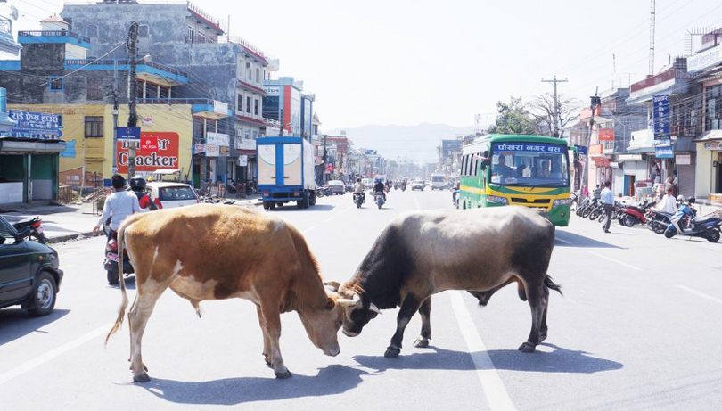 १३ असोज, काठमाडौं । काठमाडौं उपत्यकालगायत देशका ठूला सहरमा छाडा चौपायाहरू यत्रतत्र भेटिन्छन् । छाडा छाडिएका गाई, गोरु, कुकुरलगायत जनावरले सडक दुर्घटनादेखि मानवीय क्षति हुने गरेपनि यसको संरक्षणमा राज्य पक्ष निष्क्रिय देखिन्छ । २०७६ मा नेपालगञ्...