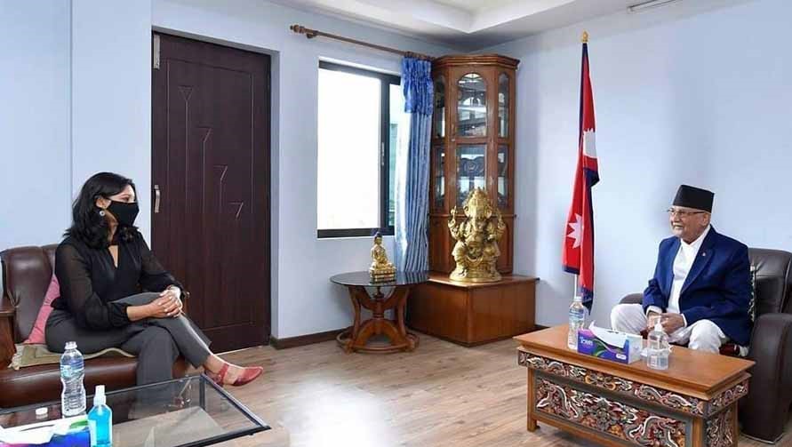 नेपाल कम्युनिष्ट पार्टी (एमाले) का अध्यक्ष केपी शर्मा ओलीसँग अमेरिकी आर्थिक सहयोग परियोजना मिलेनियम च्यालेन्ज कर्पोरेशन (एमसीसी) की उपाध्यक्ष फतिमा सुमारले आज शिष्टाचार भेट गर्नुभएको छ । अध्यक्ष ओली निवास बालकोटमा भएको सो भेटमा अम...