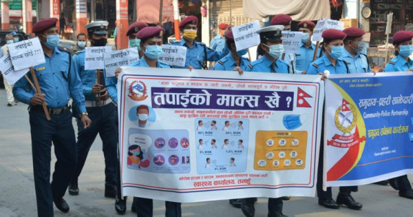 कोभिड–१९ सङ्क्रमणमा देखिएको वृद्धिसँगै नेपाल प्रहरीले पुनः ‘तपाईंको मास्क खोइ ?’ अभियानलाई तीव्रता दिन थालेको छ । यसअघि कोरोनाको दोस्रो लहर फैलिएका बेला नेपाल प्रहरीले अभियानकै रूपमा मास्क वितरण गरेको थियो । सङ्क्रमण घट्दै जाँदा...