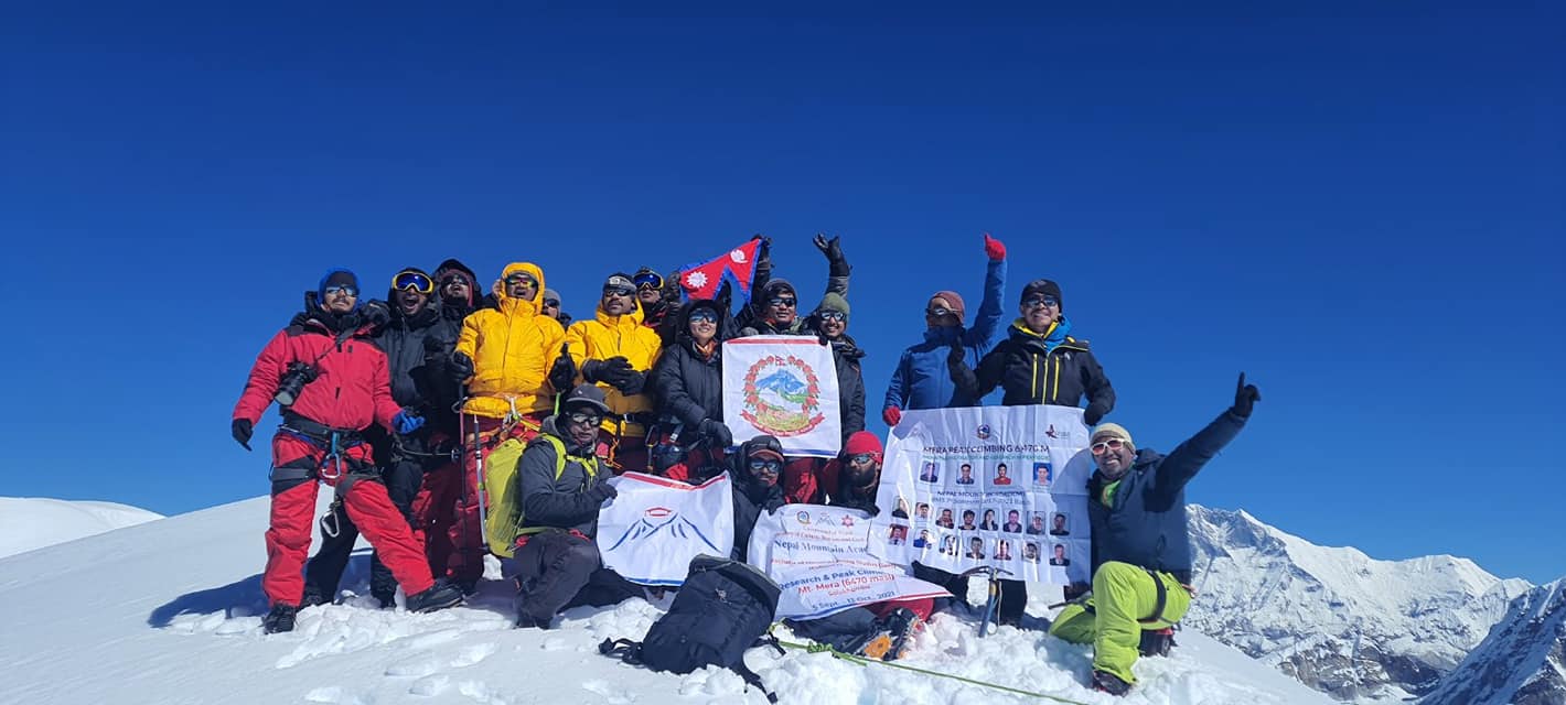 बाह्र विद्यार्थीसहित १८ जनाको टोलीले सोलुखुम्बुमा पर्ने ‘मेरा पिक’ हिमालको सफलतापूर्वक अध्ययन आरोहण गरेका छन् । नेपाल माउन्टेन एकेडेमी प्रथम व्याजका १८ विद्यार्थीले उक्त हिमालको अध्ययन आरोहण गरेका हुन् । अध्ययन आरोहणका व्यवस्थापक रिफ्य...